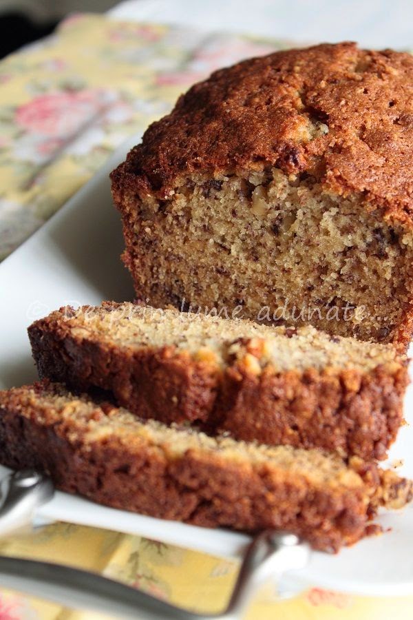 Bateti bine untul si zaharul pana cand se fac cremoase. Adaugati ouale, cate unul odata si bateti dupa fiecare sa se incorporeze. Mestecand cu spatula, adaugati vanilia si incorporati, apoi adaugati amestecul de faina si iaurtul alternativ: jumatate din faina, iaurtul, apoi cealalta jumatate de faina. Mestecati cu spatula pana cand este incorporat, adaugati bananele pisate si amestecati pana cand totul este omogen, fara sa amestecati prea mult.