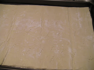Am cautat pe internet o reteta, si am adaugat de la mine afine congelate, care s-au dovedit o combinatie reusita. In loc de afine se pot folosi foarte bine capsuni sau zmeura. Am mai folosit si aluat foietaj cumparat. Data viitoare o sa incerc sa il fac singura.