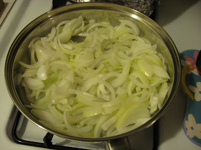Ceapa taiata solzisori, se pune intr-o tigaie la foc foarte foarte mic, cu 1 lingura de ulei, pana cand se inmoaie, fara sa se caleasca sau sa se arda (15-20 minute, ca nu e graba).