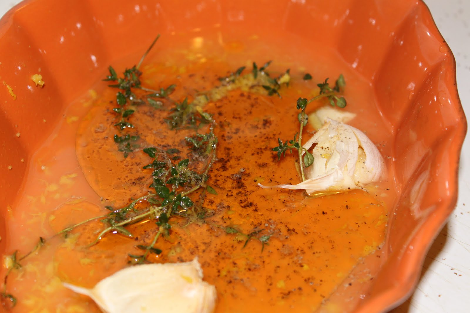 Se amesteca toate ingredientele pentru saramura intr-un vas intins.
