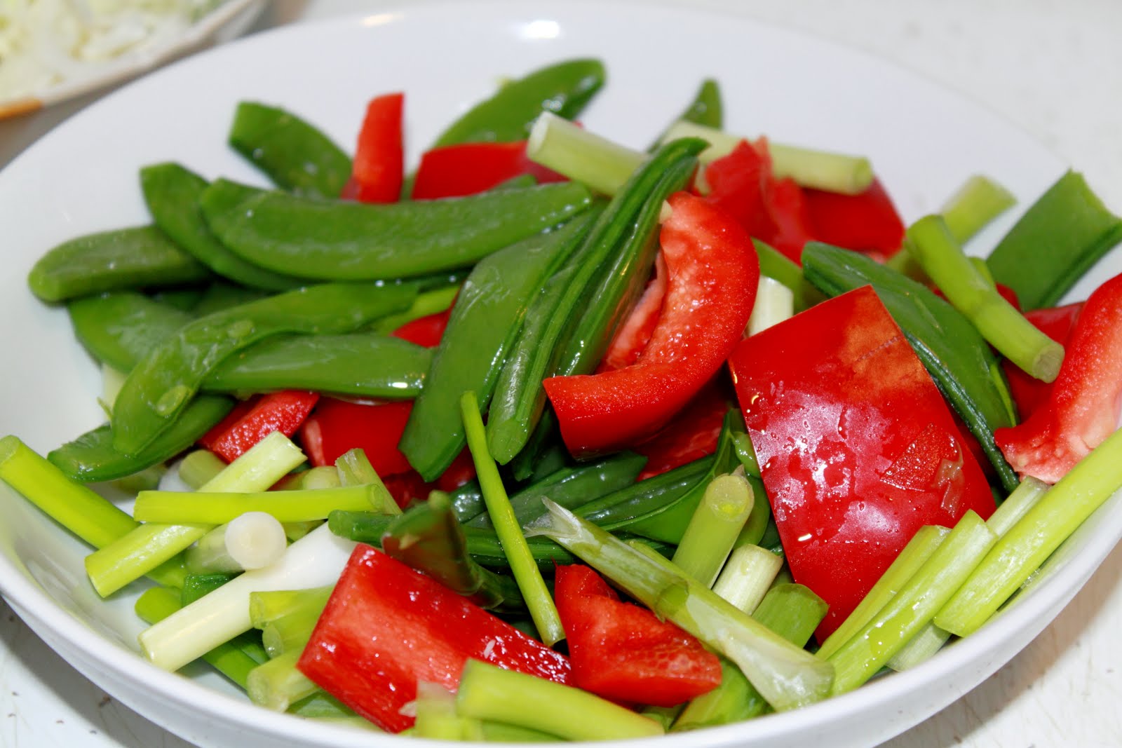 I couldn’t say is an authentic Chinese recipe, but its close enough. I used whatever vegetables I had in the fridge, and you can substitute with whatever you like: broccoli, mushrooms, and green beans.