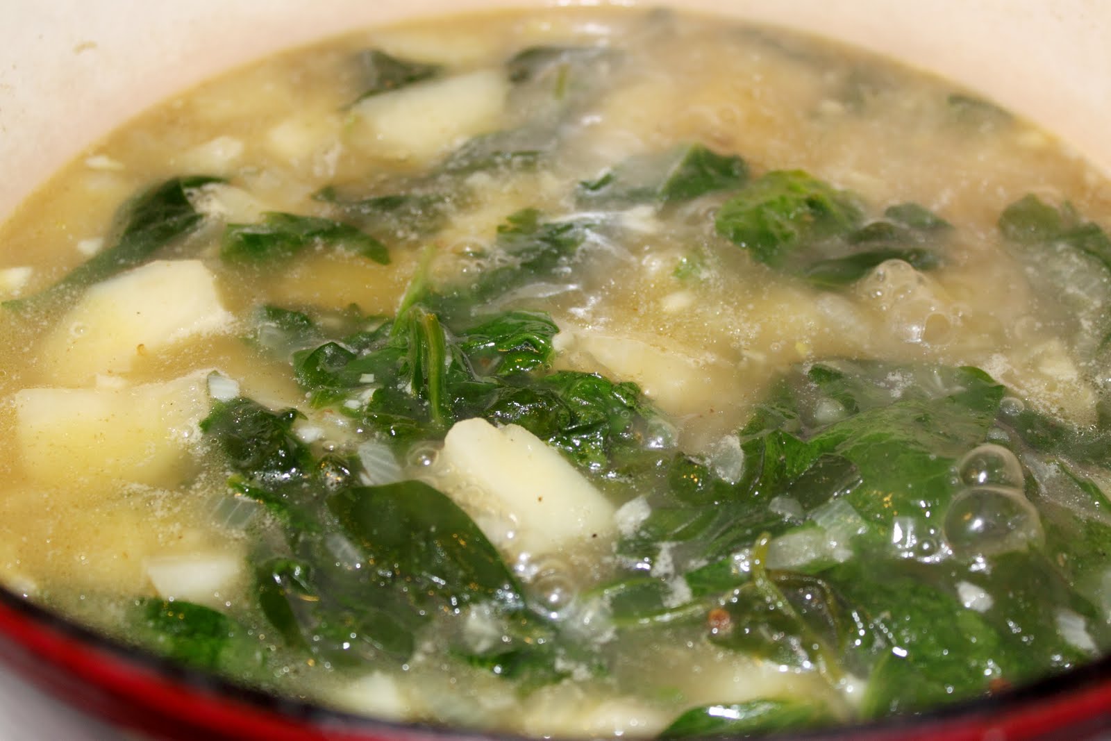 The spinach and potatoes soup is good for the cold winter days, served with fresh crusty bread. If you choose to use coriander and fennel seeds, you will have some Indian flavors in your soup.