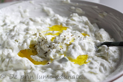 Se amesteca iaurtul cu castravetii, usturoiul, uleiul de masline si se potriveste de sare si zeama de lamaie.