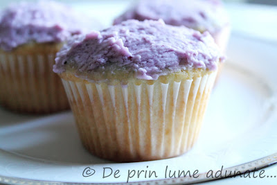 Ca sa revin la reteta mea, cred ca ati observat ca imi place sa incerc culori naturale, cu mai mult sau mai putin succes. Va imaginati entuziasmul meu atunci cand am vazut pe Gourmantine's Blog aceste macaroons cu crema colorata cu afine! A trebuit sa incerc si eu crema, dar am vrut-o pentru cupcakes, asa ca am variat-o. De 4 ori, din care de 3 ori s-a taiat... Asa ca sa trecem la retete si astept opinii si sugestii, poate impreuna inventam o super crema :)